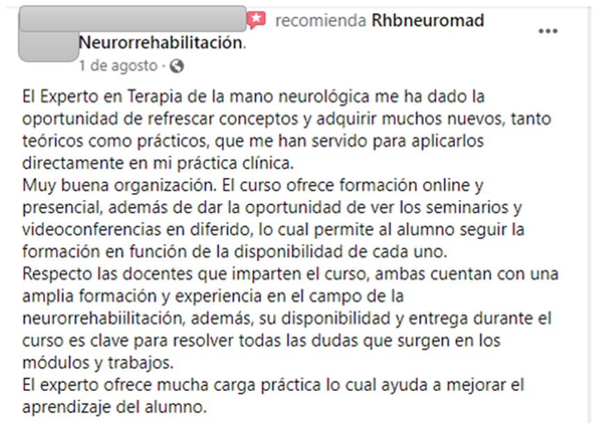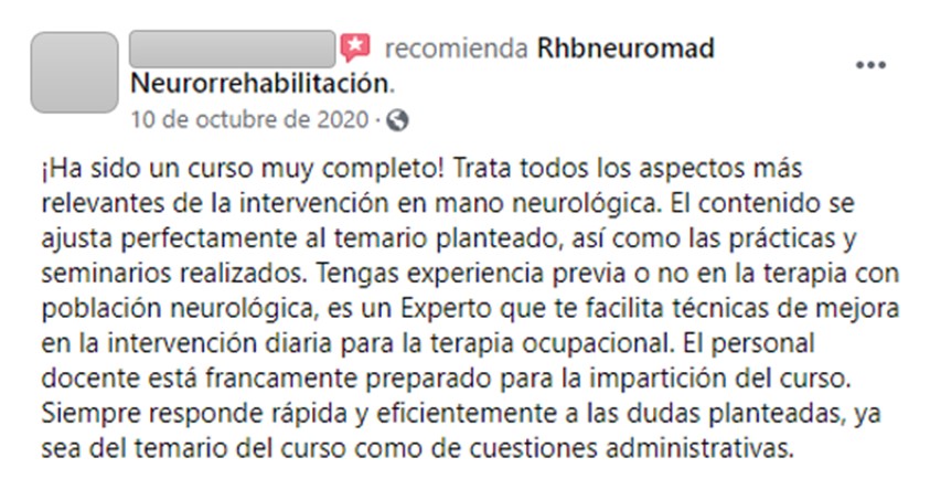 Especialista Universitario en Terapia Ocupacional Neurológica. Enfoques actuales de intervención y tratamiento en el daño cerebral.