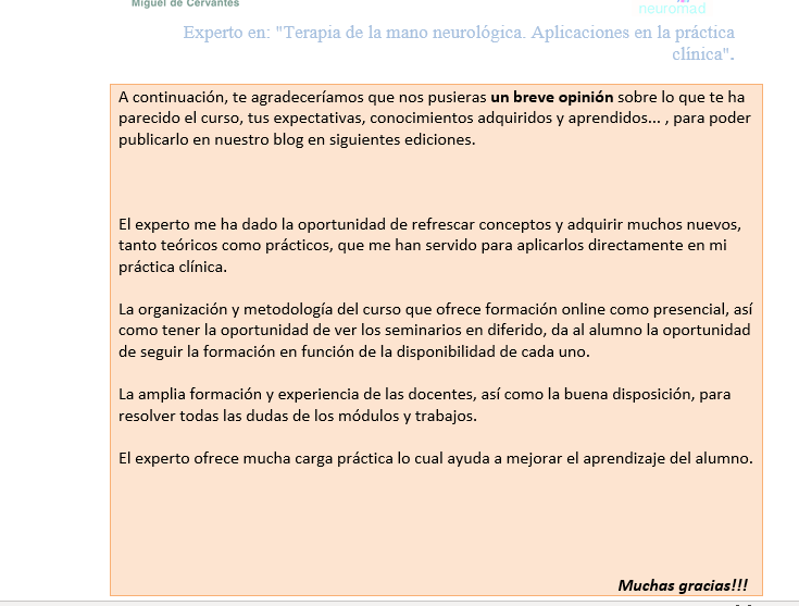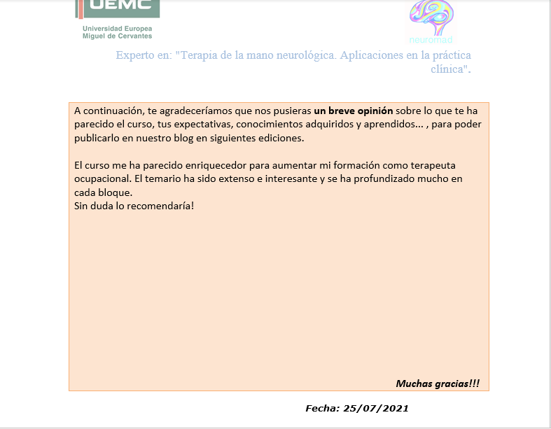 Especialista Universitario en Terapia Ocupacional Neurológica