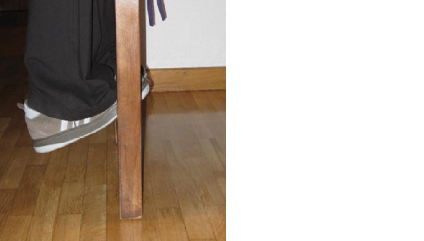Se me ocurrió empezar simplemente con los pies calzados para que haya sonido proponiendo a pacientes con espasticidad moderada del tríceps sural (pantorrillas) poner un pie de puntillas y dejar caer el talón produciendo sonidos alternos del pie derecho e izquierdo. El pie que presenta espasticidad no hace ruido al caer o hace mucho menos. Sin embargo a medida que el paciente se da cuenta de la diferencia de sonidos empieza a probar de forma intuitiva qué hacer para que el sonido sea similar y de esta forma encuentra finalmente cómo lograrlo.